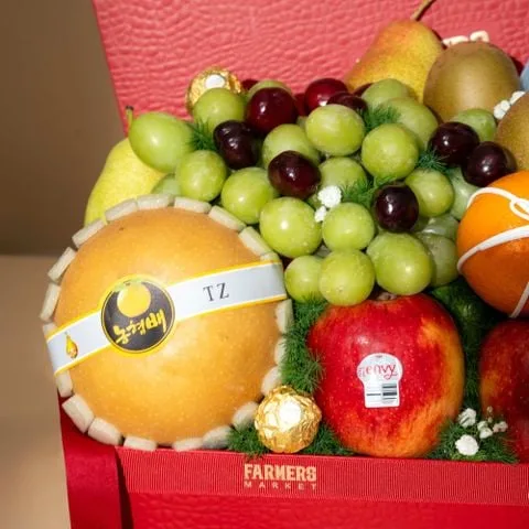 Luxurious Red Tone Yellow Cherry and Green Grape Gift Box